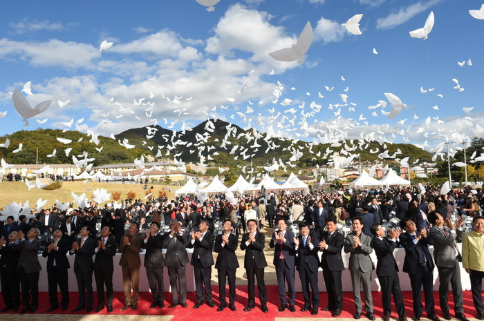 이어 진행된 평화천년기원식은 이재명 지사와 시장군수, 도민 등 1,018명이 참가해 1,018마리의 친환경 소재 소망비둘기를 하늘로 날리는 퍼포먼스로 마무리됐다.