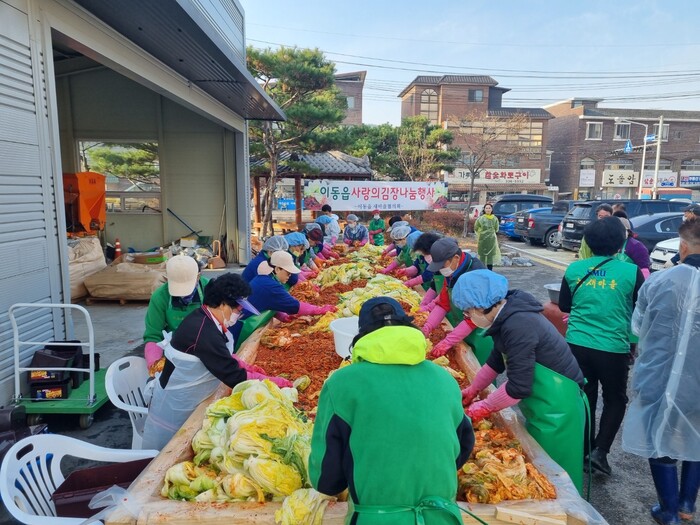이동읍 이장협의회, 주민자치위원회, 새마을지도자회, 농촌지도자회 등 회원들의 참여로 정성을 담아 만들어진 김치는 관내 홀로 어르신과 장애인 등 소외계층 200여 가구에 전달됐다.