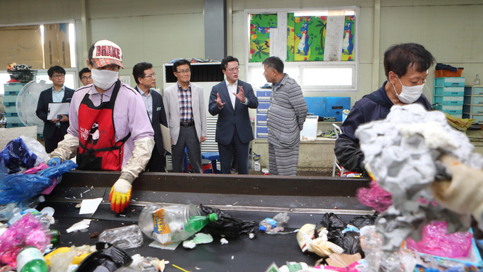 채 구청장은 자원순환센터를 둘러보며 쓰레기 처리 실태를 점검한 뒤, 재활용품 수거작업을 하는 미화원 39명과 간담회 겸 식사시간을 가졌다.