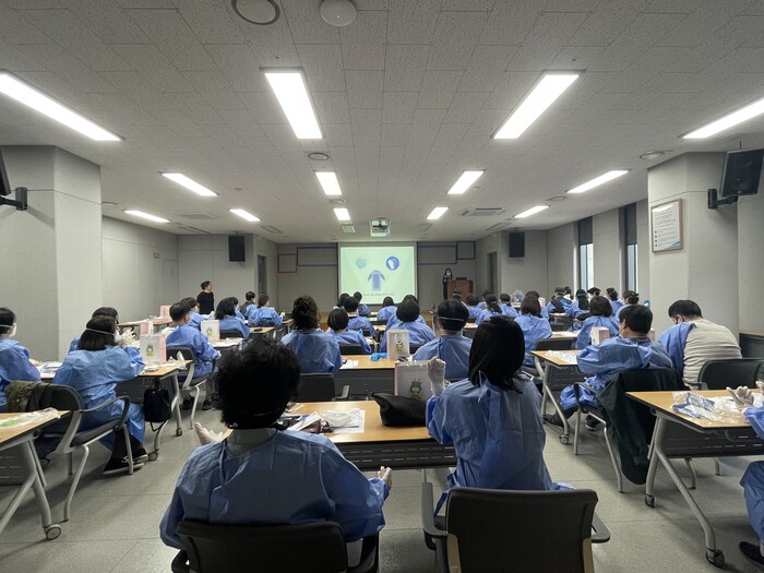 이 교육에서는 격리유형별 관리법에 대한 이론 교육, CRE 환자, 코호트 관리 등의 상황을 설정한 모의훈련을 했다. 이와 함께 개인보호구 착·탈의 실습 교육에는 ‘올바른 착·탈의 교육을 위한 체험 장비’를 활용해 효율성을 높였다.
