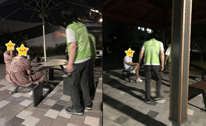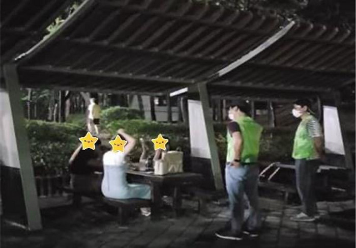 | ▲코로나19 확산 방지를 위해 성남시 공무원들이 공원 내 야간 음주행위 금지 행정명령 이행 여부를 점검하고 있다. 성남시 제공 |