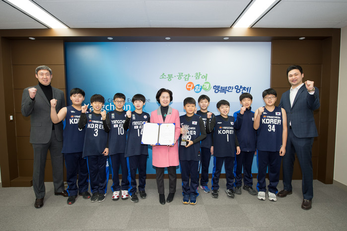 특히 지난 22일 양천구청 열린참여실에서 김수영 양천구청장은 양천구 농구협회 유소년 농구팀에게 축하의 인사를 전하는 시간도 가졌다.