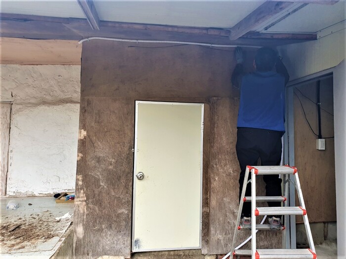 웃풍이 심한 안방 대신 부엌으로 쓰고 있던 중간 방을 침실로 사용할 수 있도록 새 문과 창호를 설치하고 도배·장판을 교체했다. 전기온수기도 들여놓고, 녹슨 대문도 수리했다.