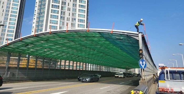 ▲ 용인특례시가 풍덕고가차로에 터널형 방음시설을 교체했다. |