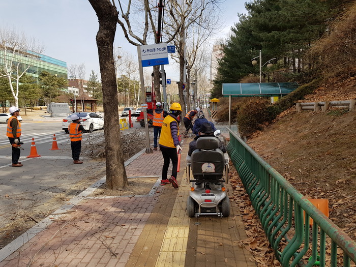 지난해 도입한 보행안전도우미는 건설사업장 주변을 통행하는 시민에게 임시보행로를 안내하고, 보행로의 안전 펜스·보행 안내판 등 안전시설을 점검하는 역할을 한다. 또 장애인, 어린이, 노약자 등 교통약자의 임시보행로 보행을 돕는다.