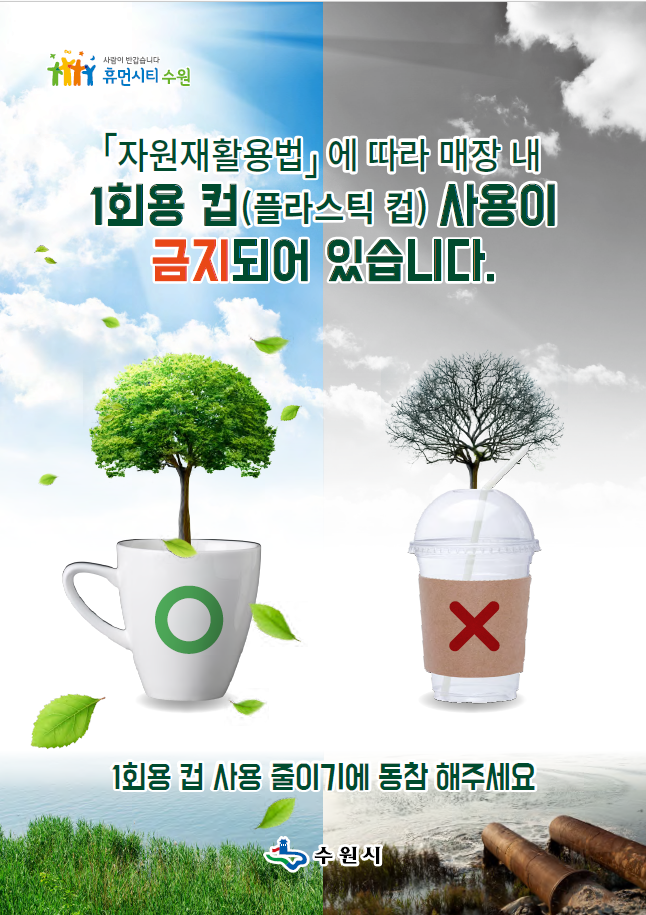 | ▲일회용컵 사용 금지 홍보물. 수원시 제공 |