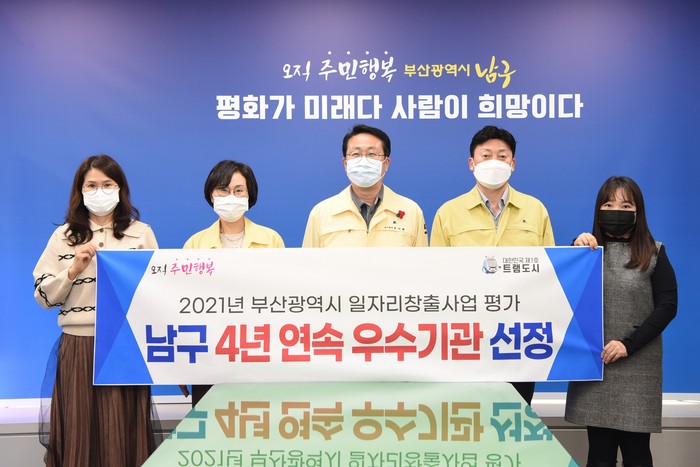 [로컬세계 맹화찬 기자]부산 남구는 부산시 주관 '2021년 일자리창출사업 추진 평가'에서 장려상을 받게 되어 4년 연속으로 우수기관으로 선정됐다.