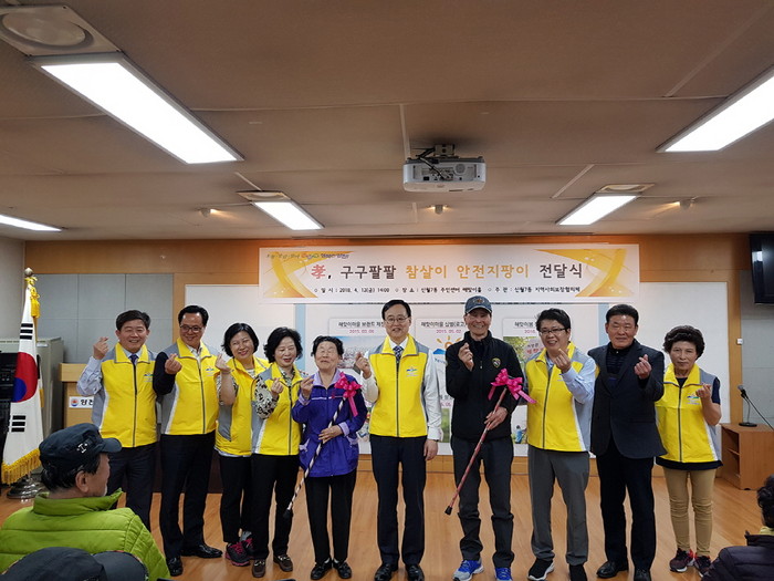 이날 전달식에서는 안전지팡이 사용방법 등을 안내하고, 오랫동안 건강하게 생활하시기를 기원하는 자리가 마련됐다.