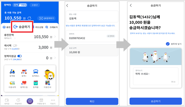 그러나 이번에 도입한 송금 기능을 통해 사용자 간에 동백전을 서로 주고받을 수 있게 됐다.