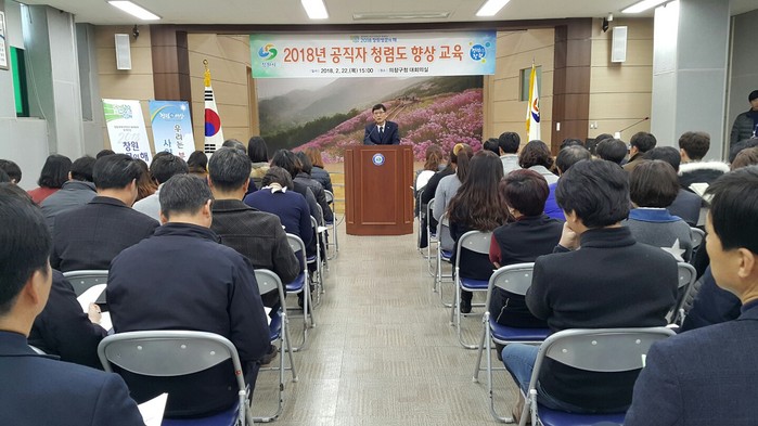 23일 창원시에 따르면 시는 청렴시책의 일환으로 22일 의창구청을 시작으로 이달 말까지 구청과 본청을 6개 권역으로 나눠 소속 공무원 1,000여명을 대상으로 하는 ‘2018년 찾아가는 공직자 청렴도 향상 교육’을 갖는다.