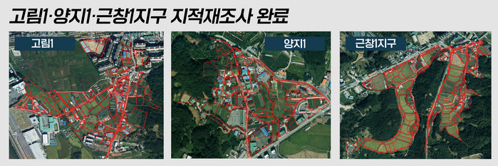 고림1지구는 토지 면적이 최종 492㎡ 증가했으며 양지1지구와 근창1지구는 각각 352㎡와 36㎡가 감소했다.