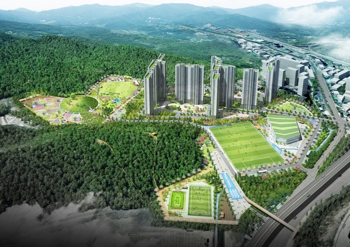 이번에 우선협상대상자로 선정된 한솔공영 컨소시엄은 이곳 부지의 76.1%에 해당하는 11만2,913㎡에 민간공원을 건립해 시에 기부채납하고 전체 부지의 23.9%인 3만5,400㎡에 883가구의 공동주택을 건설하는 안을 제시했다.