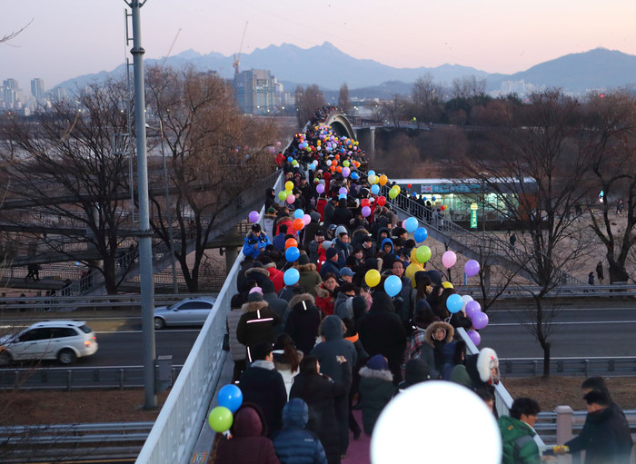 먼저, 오전 6시부터 선유보도육교 아래(양평동 방면)에서 양평동 주민으로 구성된 선유마을축제추진위원회가 따뜻한 차와 핫팩, 소망풍선을 나눠준다. 또 구민들이 안전하게 다리에 오를 수 있도록 통행을 지도하고 안전수칙을 안내한다.