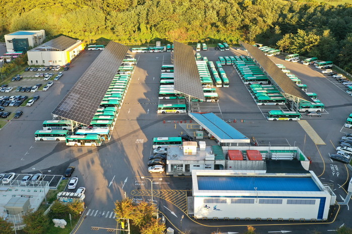 기피 시설로 여겨지던 버스공영차고지에 CNG충전소와 수소충전소, 전기버스 충전소와 태양광발전소가 집적화된 친환경 에너지 클러스터로 재탄생한 셈이다.