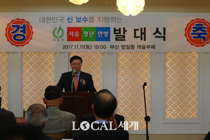 [로컬세계 맹화찬 기자]지난 11일 부산 범일동 캐슬부페(구 황실예식장)에서 대한민국 신 보수를 지향하는 자유 청년연맹 발대식(초대회장 박봉철·52)을 갖었다. 이날 발대식에는 이종혁 자유한국당 최고위원, 김성길 전 부산시의회 대외협력위원장을 비롯한 귀빈 청년 등 약 200여 명이 참석했다.