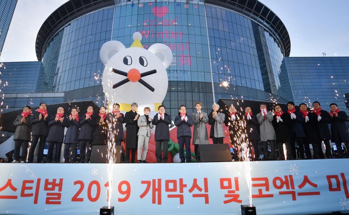 개막식은 김영주 무역협회장, 정순균 강남구청장, 손태규 코엑스 마이스클러스터 위원회 위원장, 이동원 코엑스 사장 등 코엑스 MICE클러스터 위원회 주요 관계자들과 코엑스 윈터페스티벌 2019의 홍보대사인 아이돌그룹 세븐틴이 참석했다.