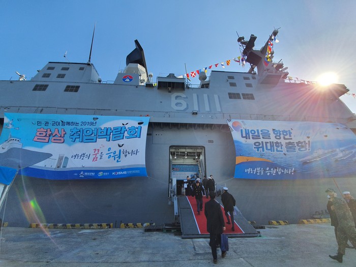 이번 함상 취업박람회는 취업 활동에 애로를 겪는 장병과 중소벤처기업의 구직구인난을 해소하기 위해 대한민국해군, 중소벤처기업진흥공단, 창원시가 공동 주관하고 국방부, 중소벤처기업부, 고용노동부, 해양수산부, 국가보훈처, 국방전직교육원, 한국해양수산연수원, 한국선원복지고용센터 후원으로 80개 업체가 참가했다.