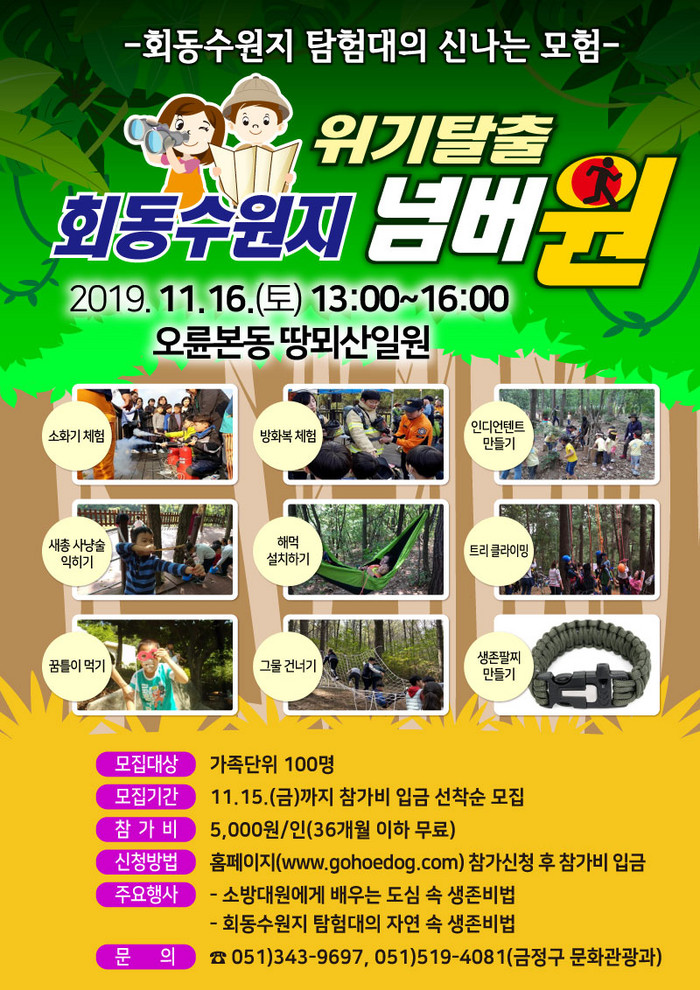 금정구 관계자는 “야외 활동이 많아지는 가을, 모험과 탐험을 즐기는 아이들이 자연 속에서 놀이를 통해 안전을 배우는 유익한 경험이 될 것으로 기대한다”며 참가신청을 서둘러 주기 바란다고 당부했다.