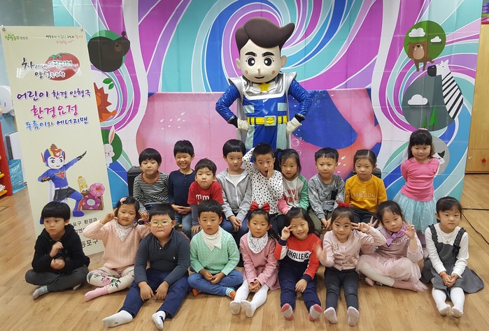 인형극은 ‘환경 요정 푸름이와 에너지맨’으로 형광등을 켜놓거나 냉장고문을 열어두고 쓰레기를 함부로 버리는 어린이들의 잘못된 습관을 바로잡기 위해서 환경 요정 푸름이와 에너지맨이 나타나, 환경오염 줄이는 방법을 알려주고 초록별 지구를 구한다는 내용이다.