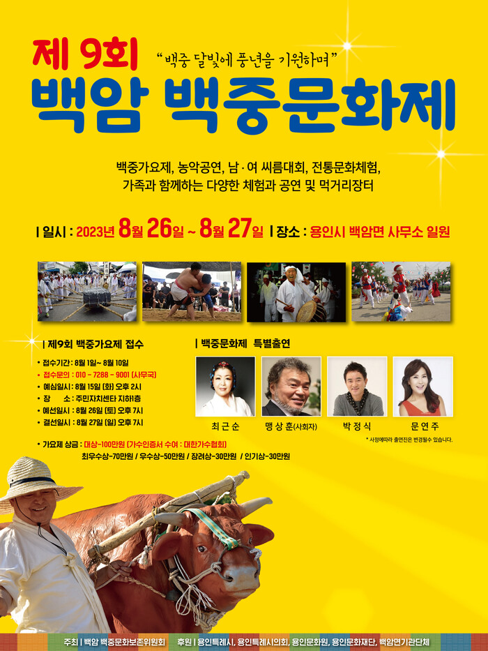 [로컬세계=김병민 기자]경기 용인특례시 처인구 백암면 지역의 전통 민속축제인 ‘백암백중문화제’가 오는 26일부터 27일까지 백암장터 일원에서 열린다.
