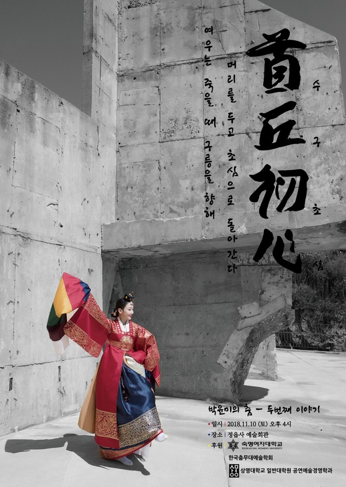 ‘수구초심(首丘初心)’은 여우가 죽을 때 구릉을 향해 머리를 두고 초심으로 돌아간다는 의미로, 박윤미는 자신의 고향인 정읍에서 춤을 시작하던 때를 기억하며 전통무용의 깊고 풍성한 몸짓을 고향 사람들한테 선사할 예정이다.