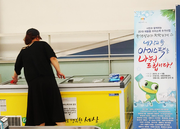 수원시는 지난 4월부터 재활용 아이스팩 공급을 위한 실태조사를 하고 재활용 아이스팩을 필요로 하는 대형유통센터와 공급할 수 있는 아파트를 선정했다.