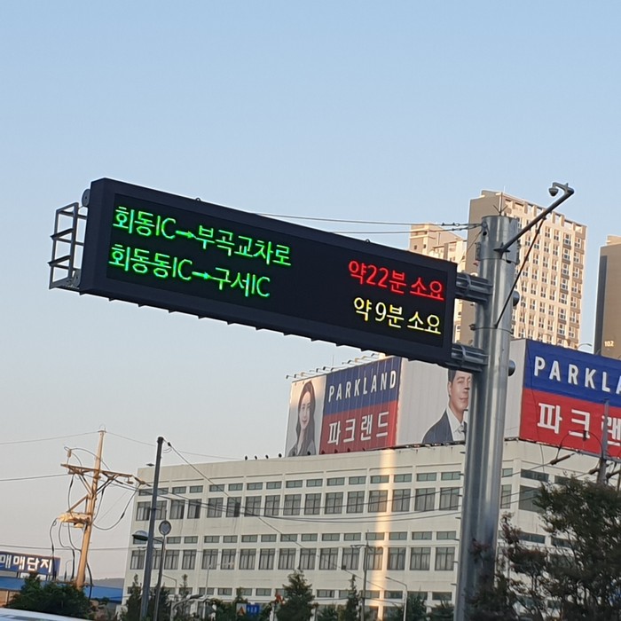 교통정보전광판은 부산시 교통정보서비스센터의 모니터링을 바탕으로 윤산터널~중앙대로의 차량 소통 흐름을 실시간 안내해 터널 정체시 운전자가 우회도로를 선택해 소요 시간을 줄일 수 있도록 돕는다.