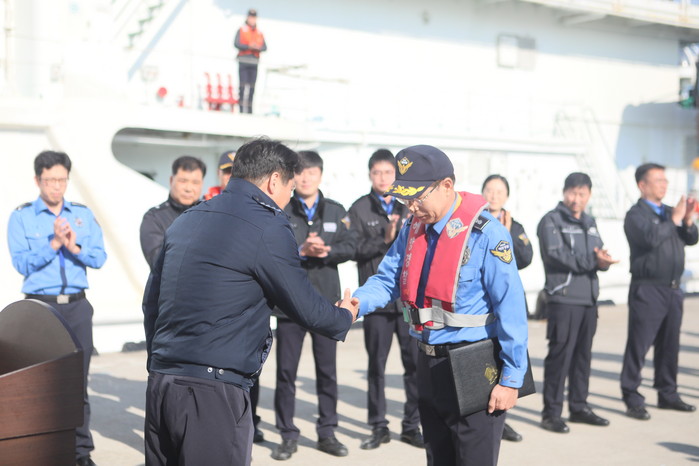박승규 부산해양경찰서장은 “12월 정년 퇴직을 앞두고 있는 가운데 마지막까지 출동 임무를 무사히 수행한 3001함장에 대한 감사와 존경을 표하고 싶었다”며 “한 기관의 장이기 전에 후배로써 선배의 오늘이 해양경찰 생활에서 아름답고 행복한 장면으로 기억이 되길 바란다”고 전했다.