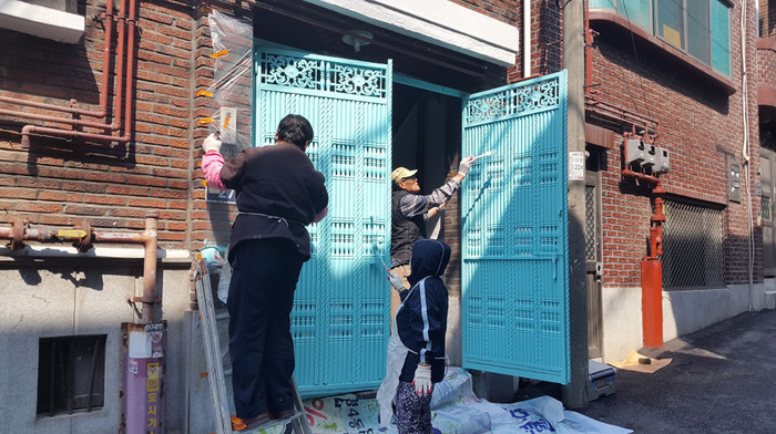 | ▲지역공동체 일자리사업에 참여한 시민들이 취약계층 가구를 방문해 집수리를 하고 있다. |