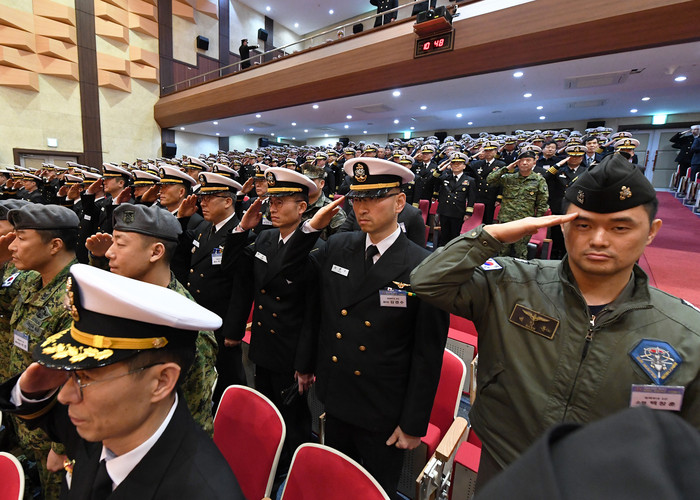 | ▲21일 해군작전사 대강당에서 진행된 아덴만 여명작전 9주년 기념행사에 참석한 장병들.(해군작전사 제공) |
