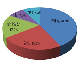 질병이 원인인 이송건수는 총 26만7774건으로 고혈압이 11만2301건(41.9%)으로 가장 많았으며, 당뇨 6만2812건(23.5%), 심·뇌혈관질환 4만8002건(17.9%)이 뒤를 이었다.