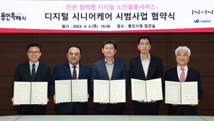 [로컬세계=김병민 기자]경기 용인특례시와 엔에이치엔(NHN), NHN의 시니어케어 전문 자회사 와플랫(주)가 용인 지역의 취약계층 어르신을 돕기 위해 힘을 모으기로 약속했다고 5일 밝혔다.