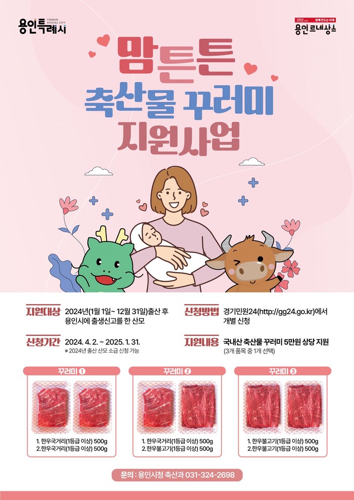 [로컬세계=김병민 기자]경기 용인특례시는 올해 출산 후 출생신고를 한 출산가정에 한우고기를 지원한다고 22일 밝혔다.