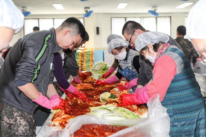2014년부터 시작해 여섯 번째로 열린 이번 행사는 지역에서 봉사활동을 추진하고 있는 ‘러브부산 운동본부’ 소속 자원봉사자 및 해운대연대 장병 20여 명이 참가해 약 3시간동안 양념을 버무려 사랑이 가득 찬 김장김치를 담갔다.