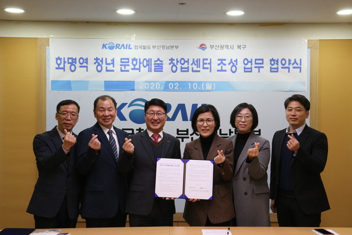 [로컬세계 맹화찬 기자]코레일 부산경남본부는 10일 오전 10시 부산역 5층 부산경남본부 회의실에서 부산광역시 북구청과 ‘화명역 청년문화예술 창업센터 조성 업무협약(MOU)’을 체결했다고 11일 밝혔다.