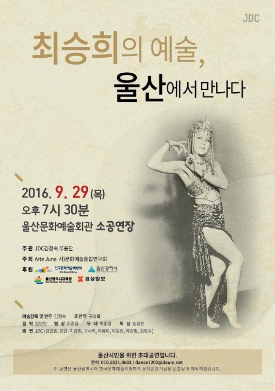이번 공연은 울산에서 처음으로 최승희의 예술을 보여주는 공연으로 100년전 전 세계를 돌며 한국을 알린 세계적인 무용가 최승희를 영상과 전수자 석예빈을 통해 재조명한다.