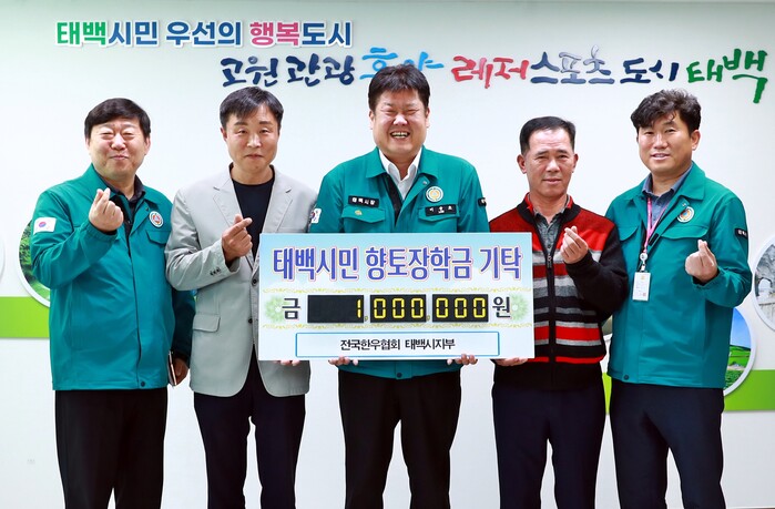 [로컬세계=박상진 기자]전국한우협회 태백시지부는 지난 9일 태백시에 지역 인재육성을 위한 향토장학금 100만원을 기탁했다고 10일 밝혔다.