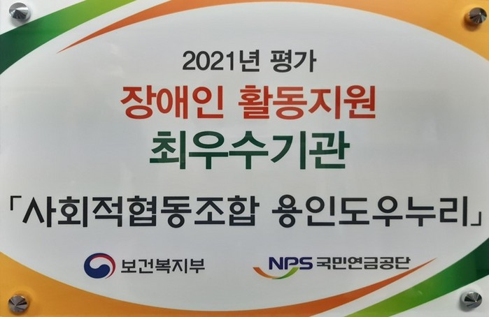 [로컬세계 김병민 기자]경기 용인시의 장애인활동지원사업을 수행하고 있는 사회적협동조합 ‘용인도우누리’가 보건복지부와 국민연금공단이 주관하는 ‘2021년 장애인활동지원기관 평가’에서 최우수기관으로 선정됐다.