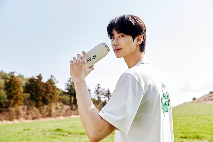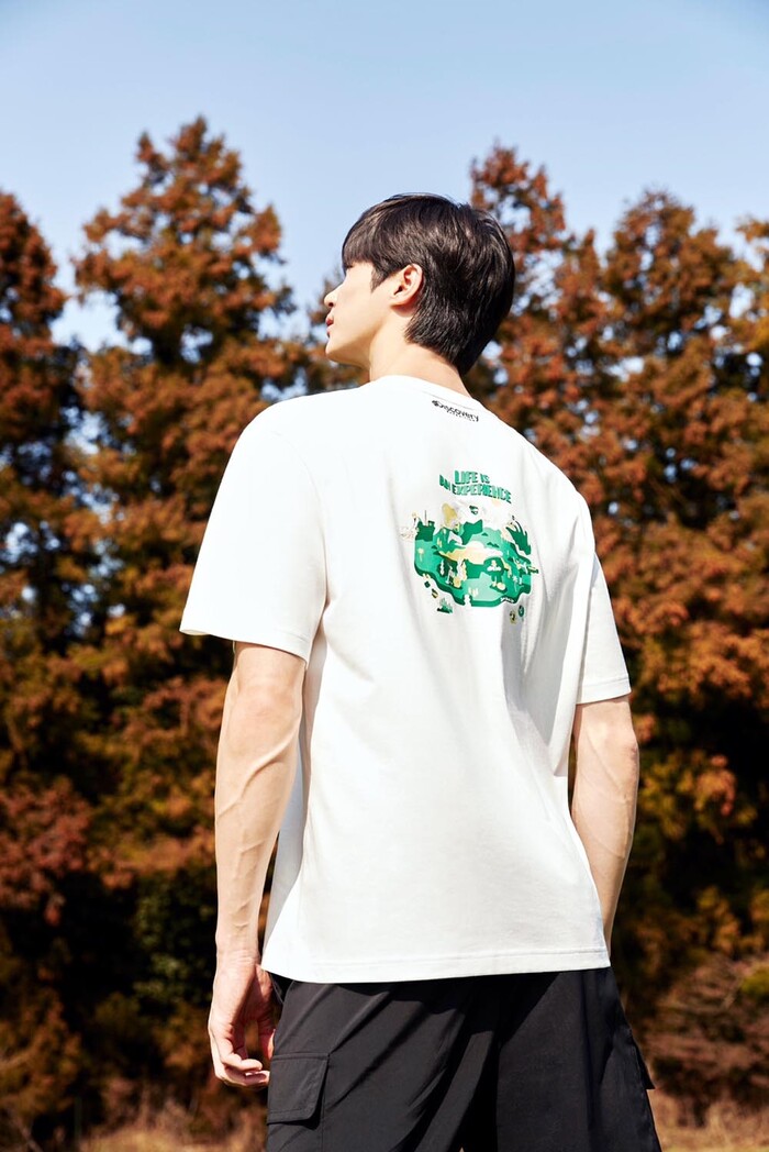 ▲디스커버리 익스페디션 앰베서더 배우 변우석의 ‘제주 리사이클 에디션’ 티셔츠 착용 모습(사진제공: F&F) |