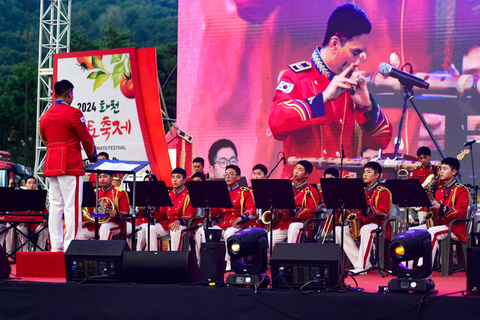 2024 화천토마토축제 이틀 째인 2일, 사내면 사창리 문화마을 메인 공연장에서 '승리부대 장병의 밤' 행사가 진행되고 있다.(사진=화천군 제공)