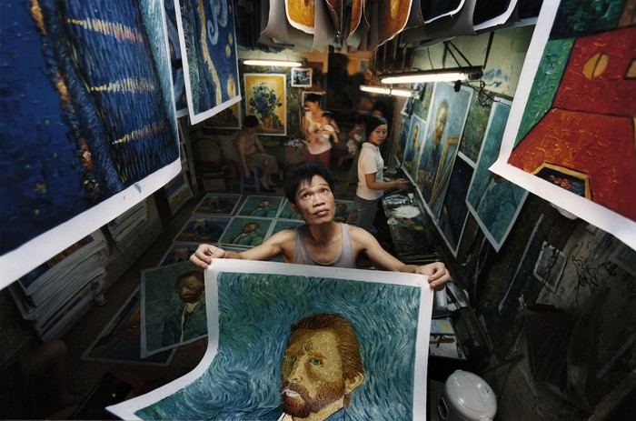 ‘짝퉁 유화’의 본고장 중국 남부 선전시 다펀 마을. 화공 8천 명이 해마다 모조품 유화를 6백만장 이상 그리는 이곳에서 고흐의 그림을 위조하는 소작농 출신 화가의 꿈은 고흐의 나라 네덜란드에 가서 그가 그린 진품을 직접 눈으로 보는 것이다. 어마어마한 규모의 모사품을 생산해내는 중국의 유화 시장과 그 안에서 자신의 진정한 꿈을 찾으려 애쓰는 개인의 모습이 극명한 대조를 이루는 이 작품은 ‘메이드 인 차이나’에서 ‘크리에이티드 인 차이나’로 탈바꿈해가는 중국 사회의 단면을 보여주고 있다.