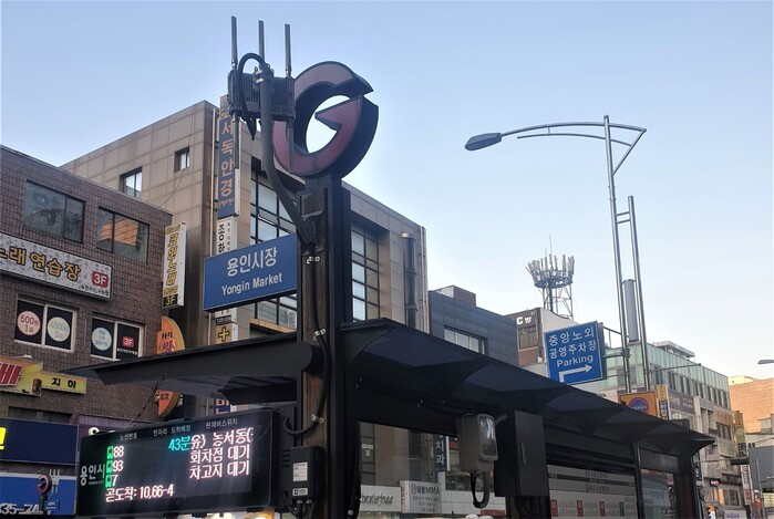 ▲ 용인중앙시장 인근 버스정류장에 설치되어 있는 무료 공공와이파이. 용인시 제공 |