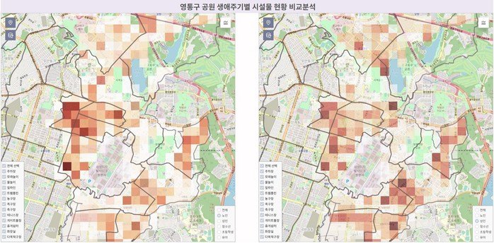 | ▲수원시 빅데이터 플랫폼에 게시할 영통구 공원 생애주기별 시설물 현황, 수원시 제공 |