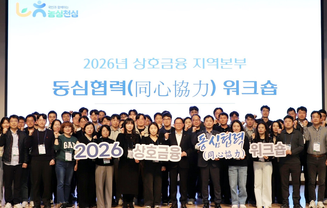 농협상호금융은 지난 11일부터 이틀간 경주교육원에서 중앙본부 및 지역본부 임직원들이 참석한 가운데 「2026년 동심협력 워크숍」을 개최했다. 농협 제공