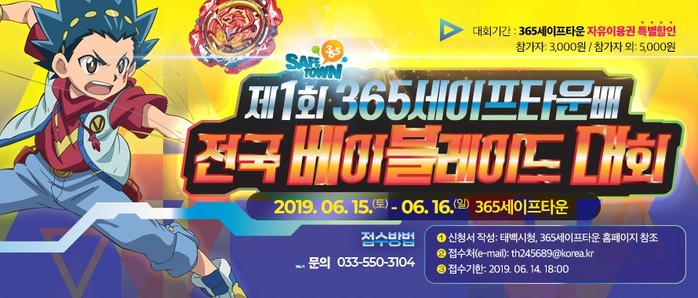 365세이프타운 관계자는 “어린이들에게 사랑받는 베이블레이드 대회를 매년 개최하여 365세이프타운의 대외적 인지도를 제고하고, 가족 단위로 대회에 참가하는 관광객들이 대회 기간 동안 태백에 체류하면서 지역 경제가 활성화되리라 기대한다”고 전했다.