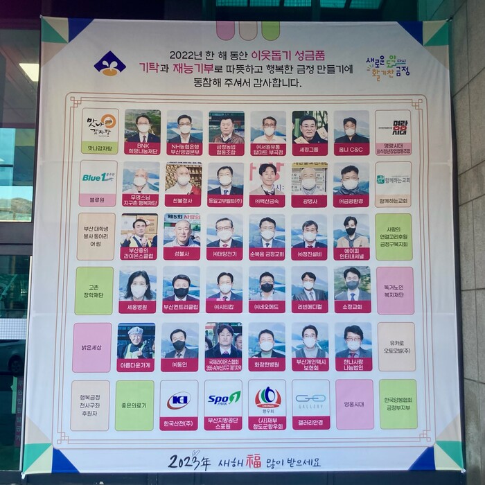 [로컬세계 부산=맹화찬 기자]부산 금정구는 2022년 한 해 동안 나눔 문화 확산에 적극 동참하여 어려운 이웃들에게 따뜻한 마음을 전해준 후원자들에게 감사의 마음을 전하기 위해 현수막을 게시했다.