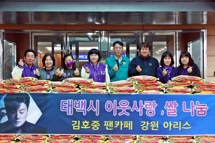 [로컬세계=박상진 기자] 김호중 강원도 공식팬카페 ‘강원 아리스’는 지난 24일 태백시에 관내 저소득 가구 및 소외계층을 위해 사용해달라며 백미 10kg 100포를 전달했다.