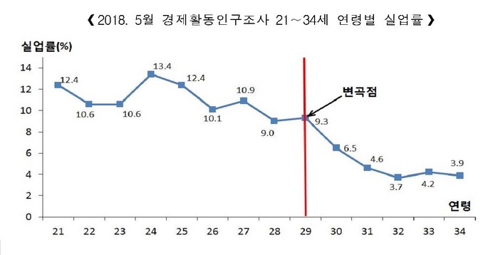 | ▲2018년 5월 경제활동인구조사 21~34세 연령별 실업률. |