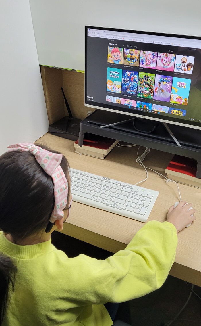 ▲ 별빛누리 도서관에서 어린이가 VOD 서비스를 이용하고 있다. 용인시 제공 |