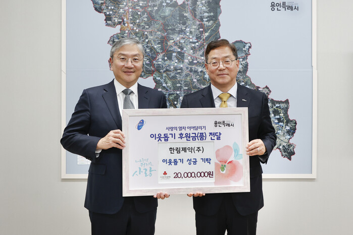 [로컬세계=김병민 기자]경기 용인특례시는 처인구 유방동 소재 한림제약(주)이 시의 이웃돕기 운동인 ‘사랑의 열차 이어달리기’에 성금 2000만원을 기탁했다고 12일 밝혔다.